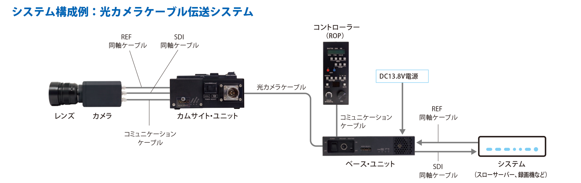 SMPTE の光カメラケーブルを使用した光伝送システム